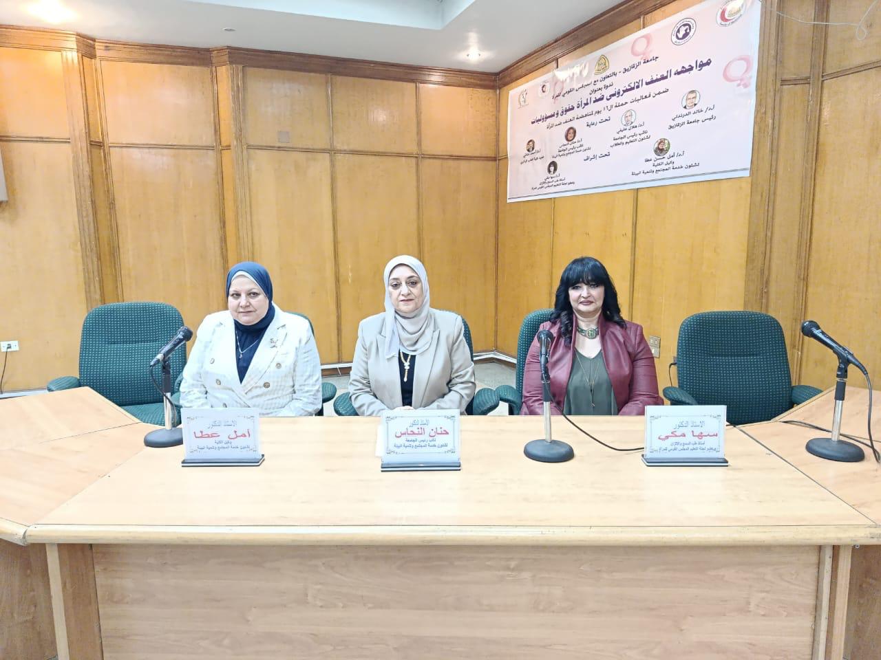 نظّمت لجنة التعليم بالمجلس القومي للمرأة ندوة توعوية بعنوان”العنف الإلكتروني ضد المرأة.. حقوق ومسؤوليات” بكلية الطب البشري بجامعة الزقازيق، بحضور نخبة من القيادات الجامعية والعلمية ،والطلاب والطالبات،وذلك في إطار فعاليات حملة الـ ١٦ يوم لمناهضة العنف ضد المرأة.
