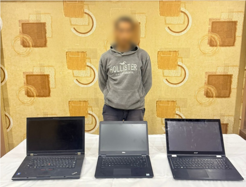 بالفحص تبين أنه بتاريخ 14/ الجارى تبلغ لقسم شرطة الشروق من (مهندس – مقيم بدائرة القسم) بسرقة عدد 3 أجهزة “لاب توب” من داخل الشقة محل سكنه بأسلوب “التسلق”.
